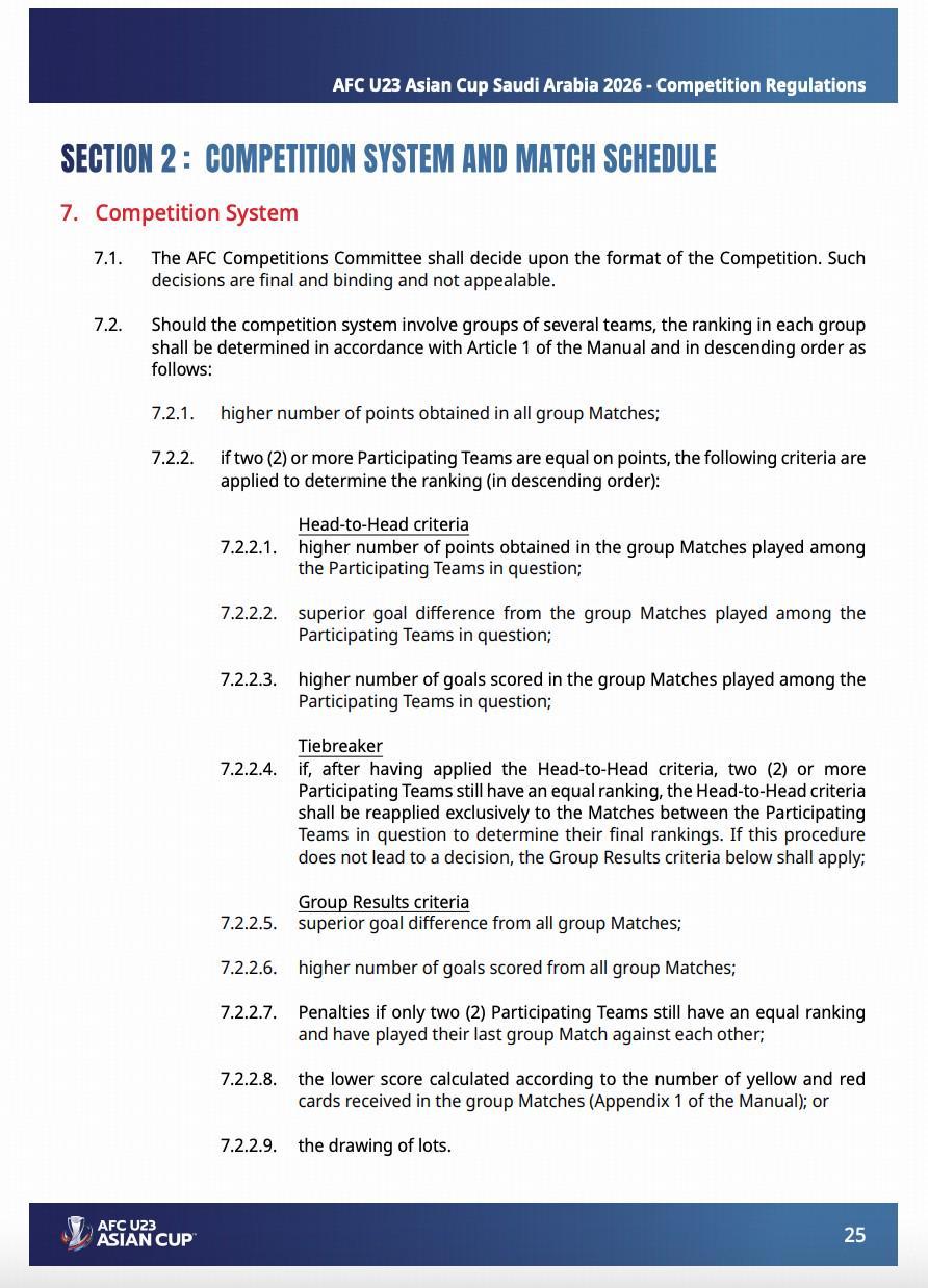 此时,中国、泰国、澳大利亚同为1胜1平1负积4分,U23亚洲杯的规则是同分情况下先比较胜负关系。
