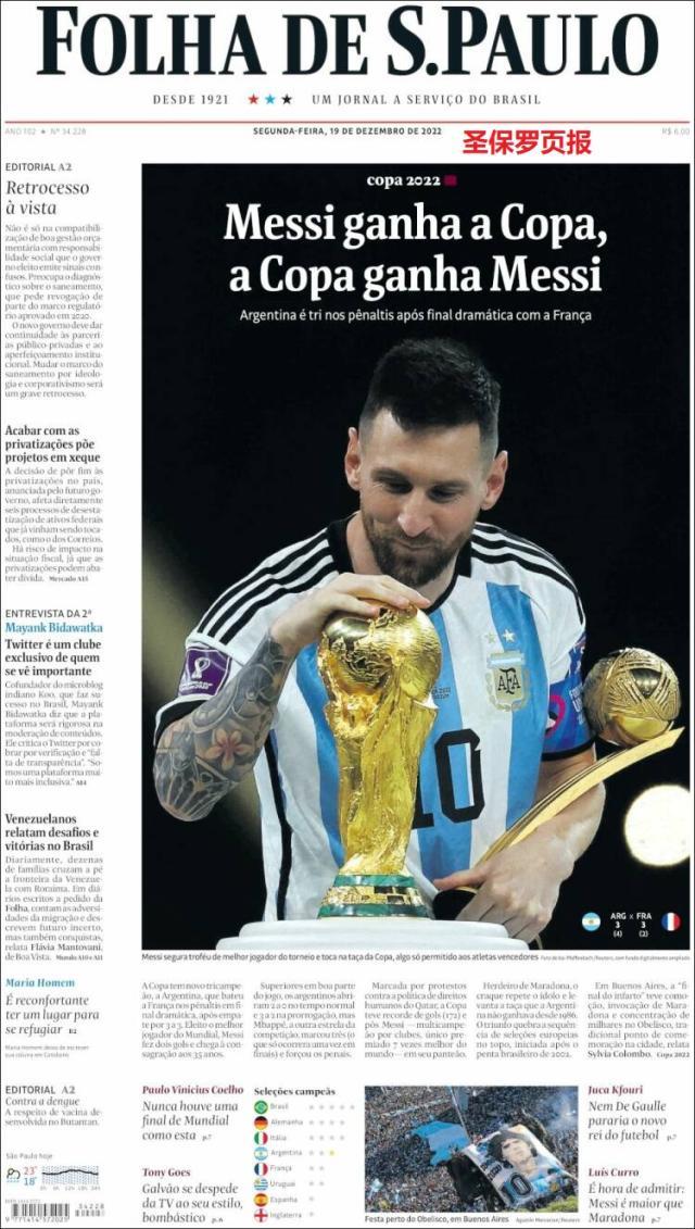 bob半岛体育官网-【图集】看,这是世界献给梅西的礼赞 2026-01-18 17:10:52 意甲 4322℃ 0 这是全世界近200家报纸在阿根廷夺得世界杯冠军后的封面。一位足球明星和他的球队接受举世礼赞,这在传媒史上实属罕见。 上一篇 bob半岛体育平台-打包哈弗茨+赖斯!阿森纳终于不用一套阵容打天下 下一篇 bob半岛体育-中国体操队公布世锦赛大名单 张博恒唐茜靖领衔 相关推荐 bob半岛体育-LPL分享BLG赛后返图:运筹决胜,连战连捷 bob半岛体育官网-丁俊晖爆冷负伊朗“一哥” 手感尽失止步大奖赛16强 记录报:鲁伊-科斯塔对穆里尼奥抱怨阵容不满,不给续约合同 bob半岛体育官网-聊发少年狂!朱·霍勒迪21中10砍全场最高30分外加6板 三分15中7 巴萨一战出局,姆巴佩诺坎普新王替旧王 bob半岛体育平台-赶走“罪人”后更差了?热刺球迷满意度降到历史最低